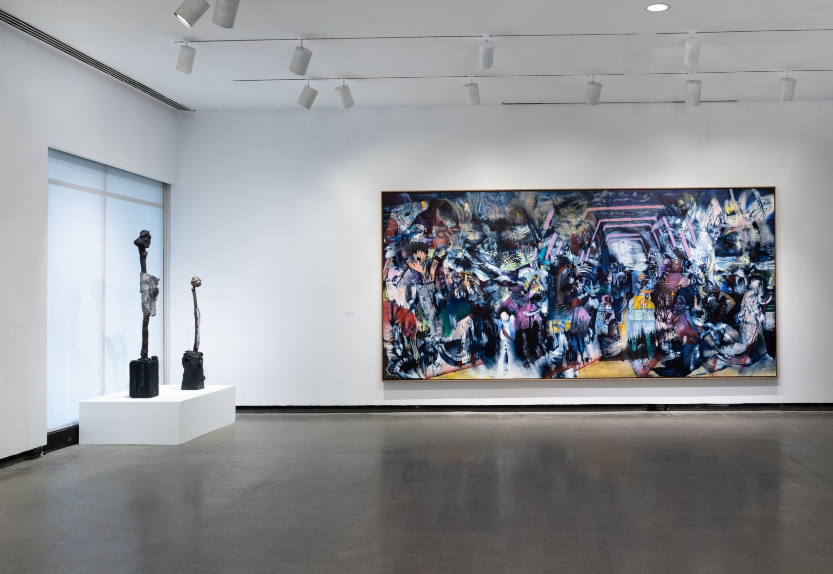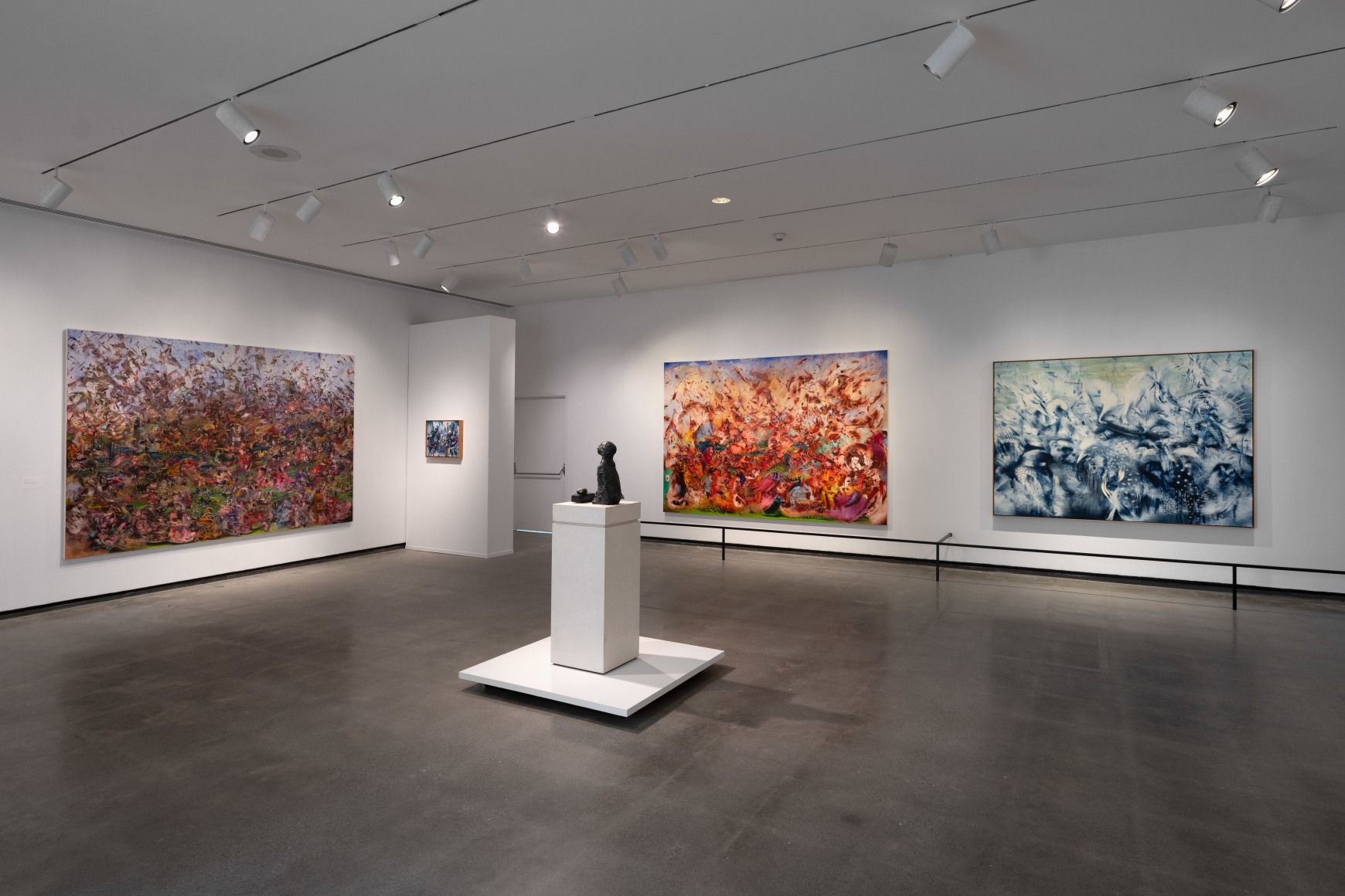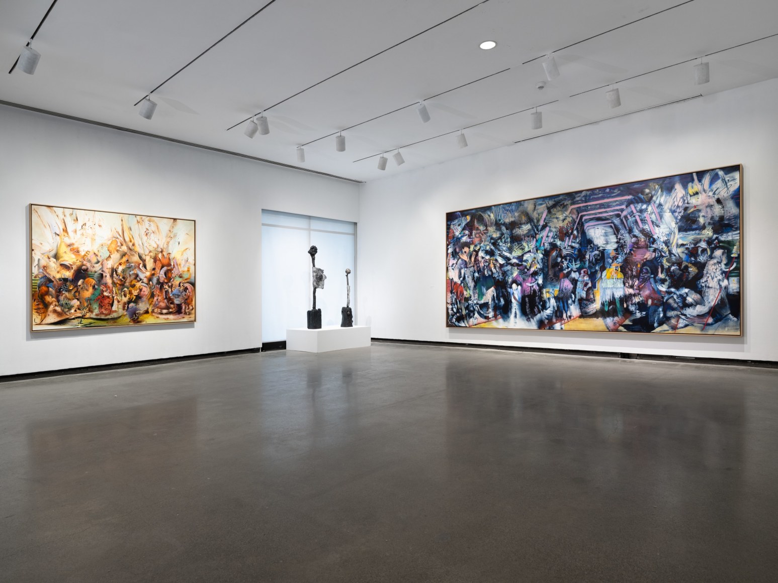 Ali Banisadr’s biographical history growing up amidst revolution and political unrest in Iran, his emigration to the U.S., and wide-ranging artistic influences exemplify the shifting definition of what it means to be an “American artist” today. The personal and artistic narratives across his oeuvre, distilled through a dazzling mastery of art history, philosophy, and world events, offer a nuanced perspective on human nature. Banisadr is a creator of worlds—intuitively and painstakingly constructed—that exude a vitality at once turbulent and revelatory. These microcosms are the culmination of a careful balancing act between chaos and composure, abstraction and representation. Expansive compositions are rich with figurative allusions, sonic recollection filtered through the artist’s synesthesia, invented stories, world history, collective memory, and mythology. The works’ syncopated rhythms echo a multitude of references across the history of
