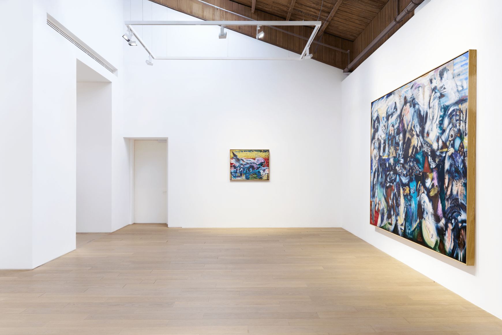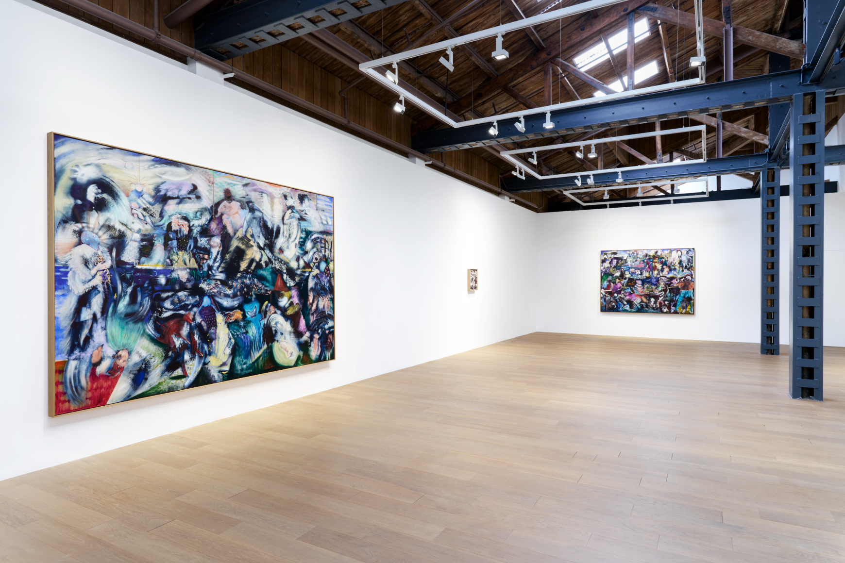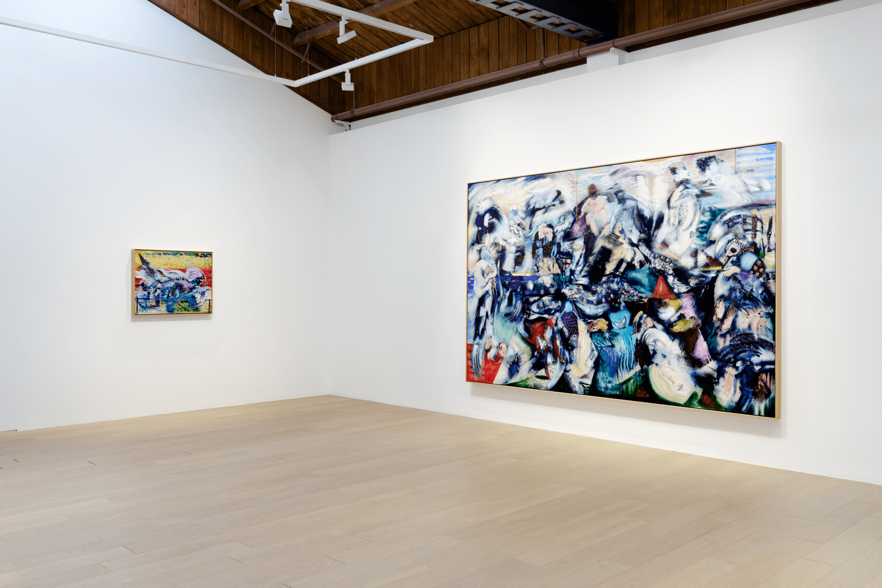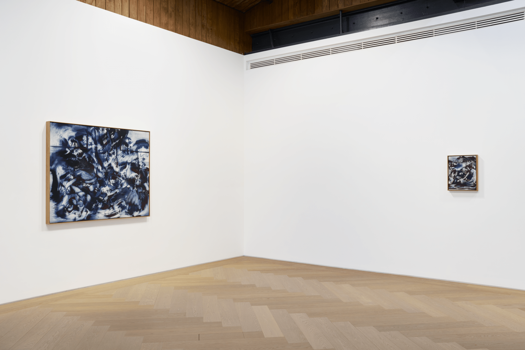 Banisadr’s characters are related to the extraterrestrial beings encountered in science fiction, heroes and wizards in epic quest novels, medieval bestiaries, the ghoulish creatures that Matthias Grünewald depicted in the Isenheim Altarpiece (1512-1516), and illustrated alchemical texts, just to name some of his inspirations. However, while resolution is common to many of these works, Banisadr’s figures inhabit a turbulent, alternate world in which resolution and redemption are noticeably absent.In the 11 paintings that constitute Banisadr’s debut exhibition in China, the viewer is invited to enter cacophonous worlds and shadowy domains. Most of the paintings can be divided into two groups, with The Painting (2020 - 2024) being the exception. Each group tends to be the same size, with the smaller paintings sharing the same moody blue palette. Within each group, however thematically connected, each painting is as unique as the planets in our solar system.