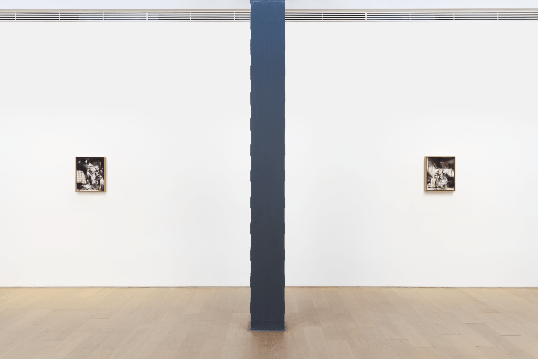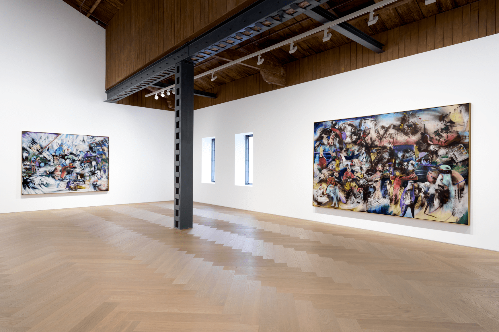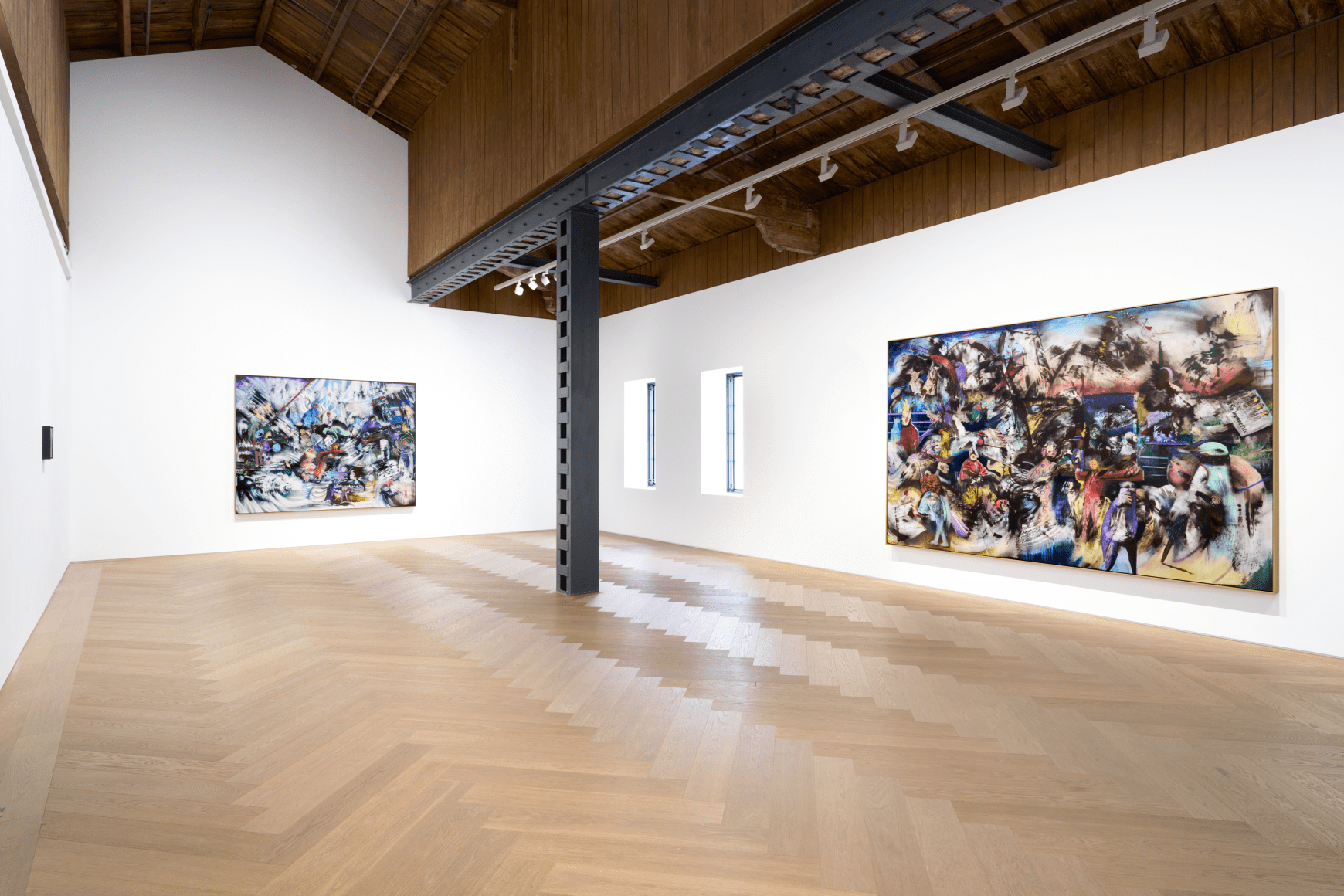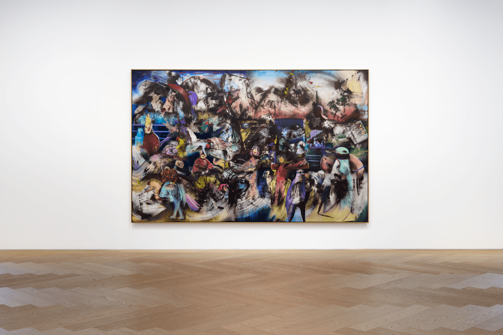 Banisadr’s characters are related to the extraterrestrial beings encountered in science fiction, heroes and wizards in epic quest novels, medieval bestiaries, the ghoulish creatures that Matthias Grünewald depicted in the Isenheim Altarpiece (1512-1516), and illustrated alchemical texts, just to name some of his inspirations. However, while resolution is common to many of these works, Banisadr’s figures inhabit a turbulent, alternate world in which resolution and redemption are noticeably absent.In the 11 paintings that constitute Banisadr’s debut exhibition in China, the viewer is invited to enter cacophonous worlds and shadowy domains. Most of the paintings can be divided into two groups, with The Painting (2020 - 2024) being the exception. Each group tends to be the same size, with the smaller paintings sharing the same moody blue palette. Within each group, however thematically connected, each painting is as unique as the planets in our solar system.