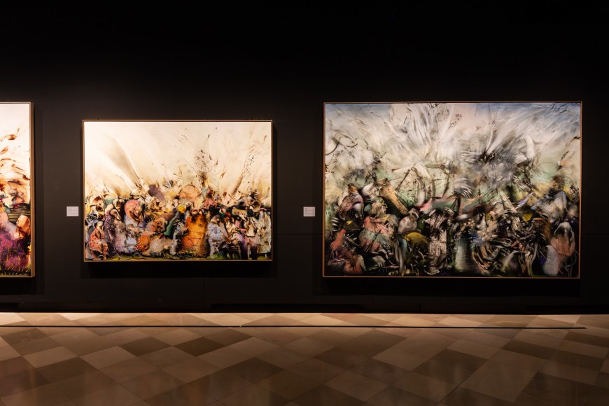 The exhibition presents six of Banisadr’s paintings, almost all large-scale, from 2015, 2017, 2018, and 2019. Some of these pieces come directly to Vienna from the artist’s European museum debut which was held at the Het Noordbrabants Museum in Bosch’s native city of ’s-Hertogenbosch.