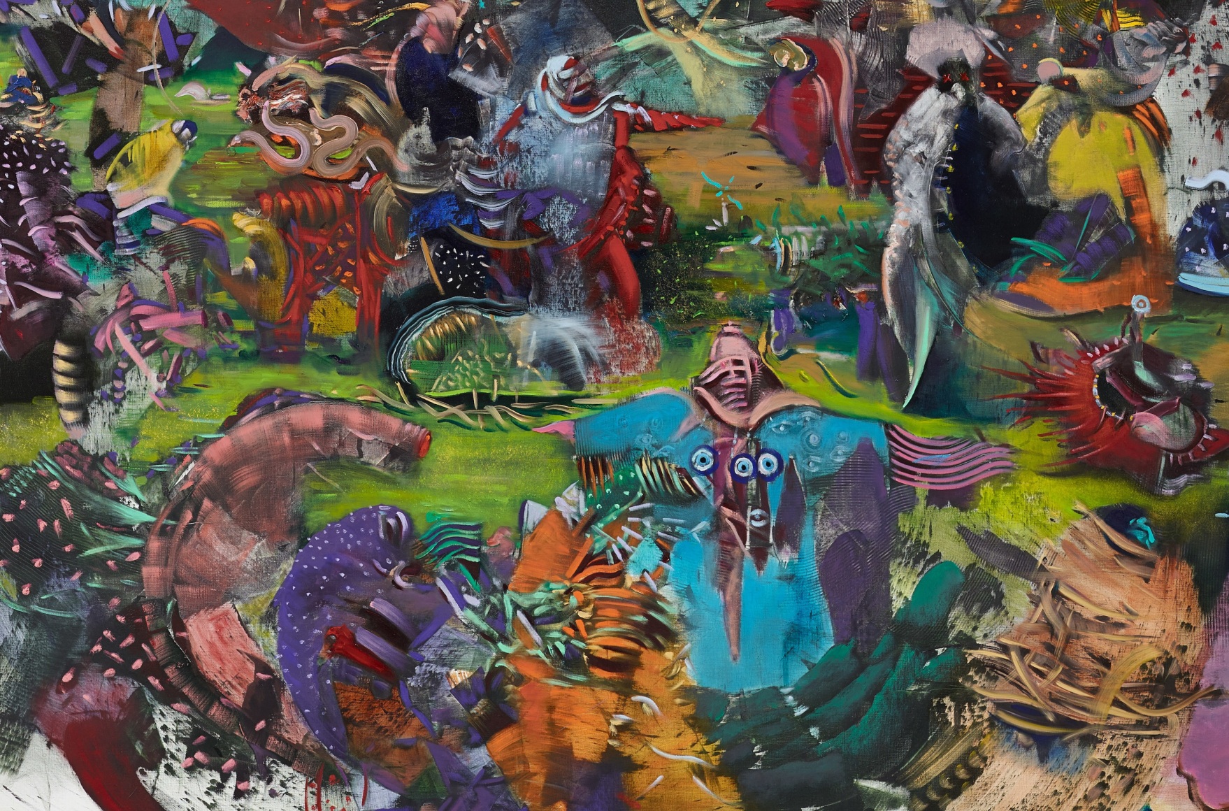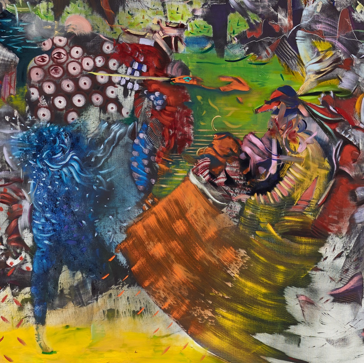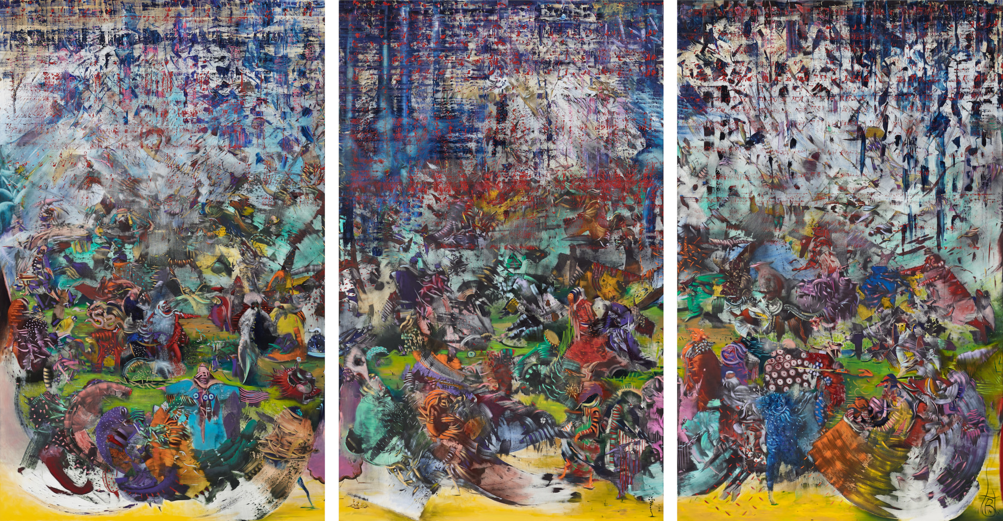 "Ran", 2013, Oil on Linen, 96x180 inches (Triptych)