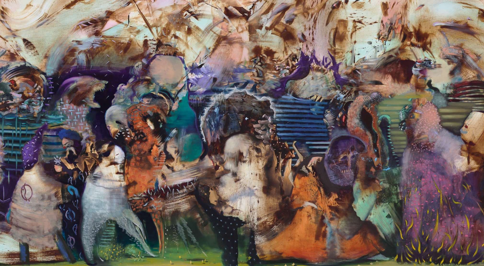 "We work in shadows", 2017, Oil on Linen, 82x120 inches