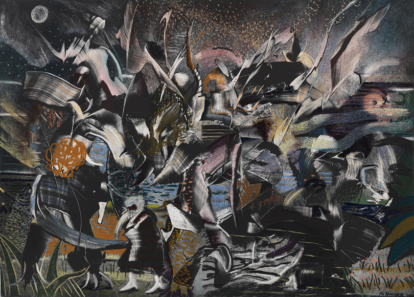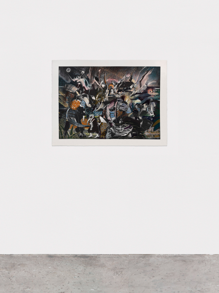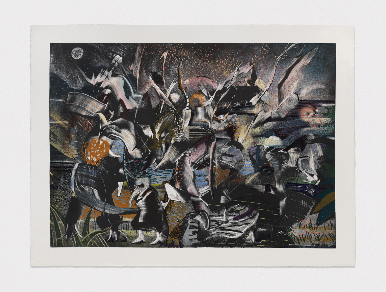 "The Moon Watchers, 2026, Pastel, charcoal and ink on paper, 41x55 inches