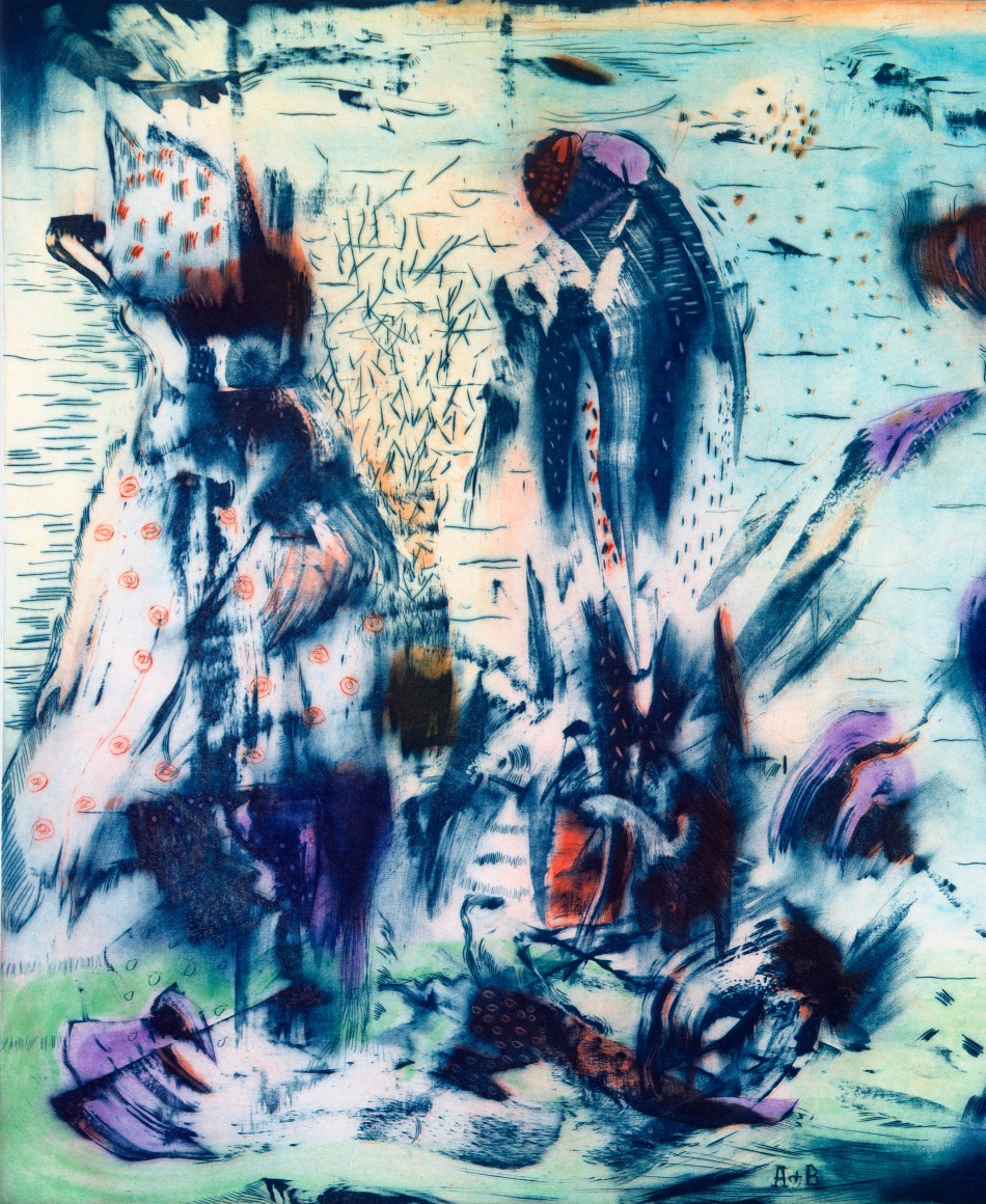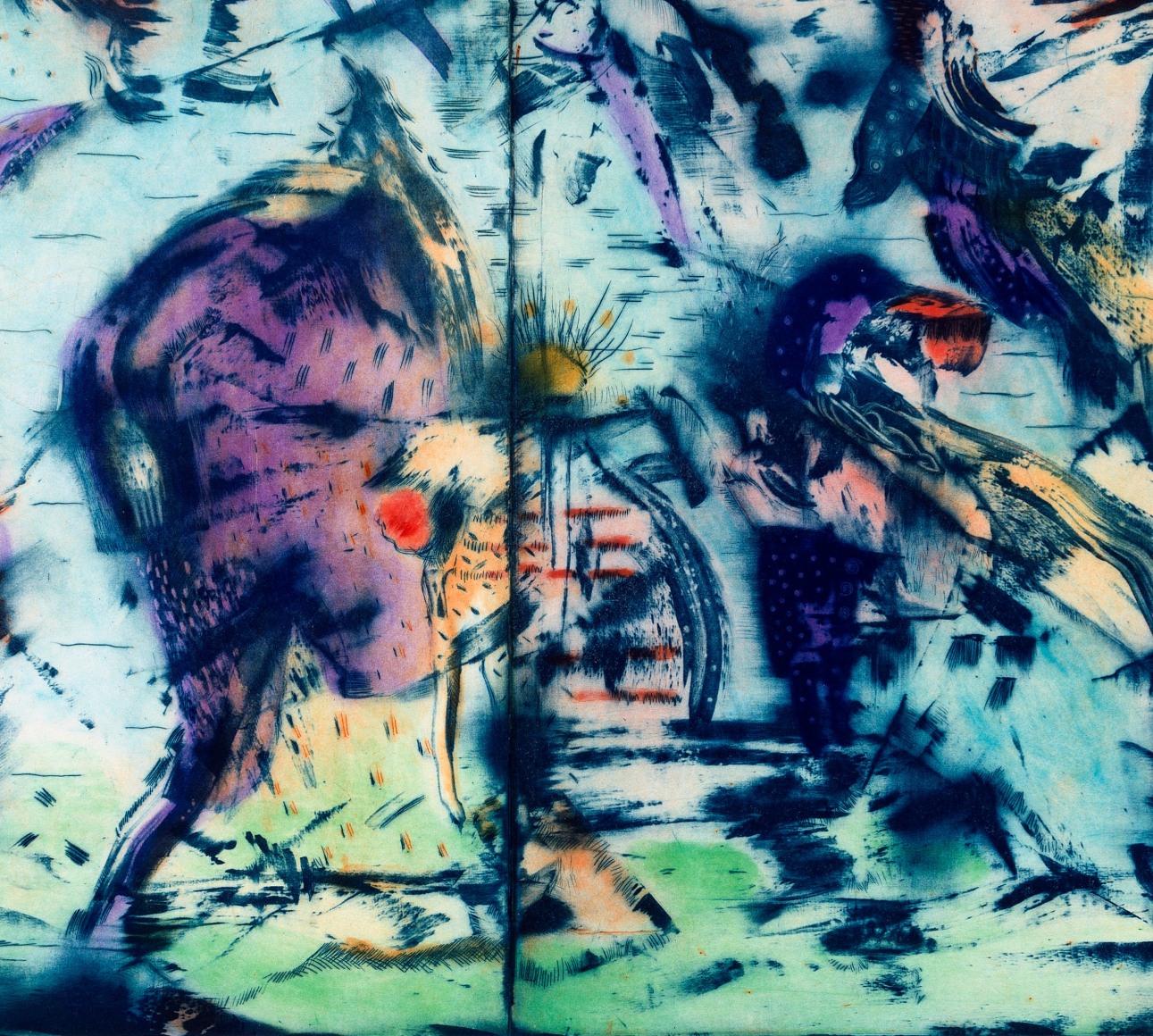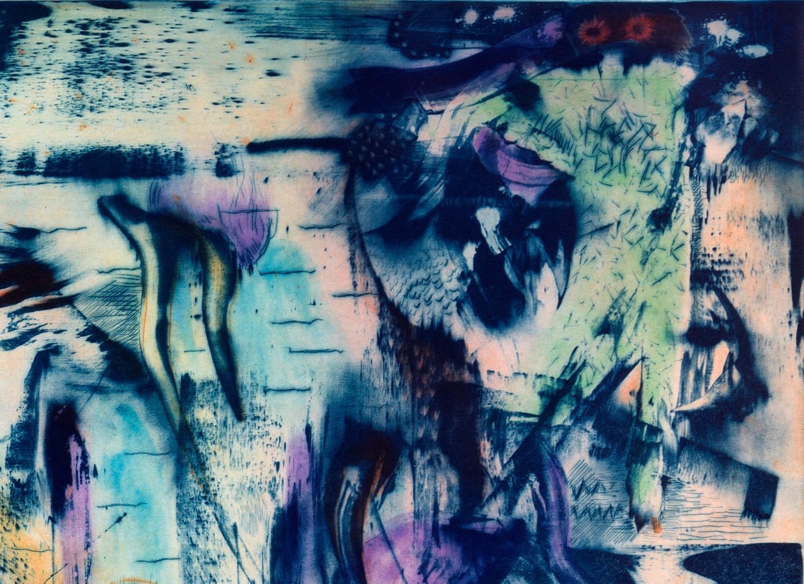 "The Rising Sun", 2022, color Etching from 8 plates with Aquatint, Spitbite, Drypoint and Burnisher on Hahnemuhle Copperplate Bright White 350gsm paper, Paper size: 30 3/4 x 59 1/2 inches ,Image size: 23 7/8 x 53 1/2 inches, Edition of 35